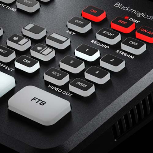 کنترل پنل دارای دکمه‌های کنترلی با نور پس‌زمینه با قابلیت مشاهده آسان است تا انتخاب ورودی‌های دوربین، کنترل ترنزیشن، کلیدها، تنظیمات و DVE را امکان‌پذیر کند. ATEM Mini Pro چندین دکمه را در سمت راست اضافه تر ازATEM Mini  دارد، مانند یک دکمه ضبط سریع، که به شما امکان می دهد بلافاصله پخش زنده خود را روی منبع USB متصل ضبط کنید، یا با نگه داشتن آن، می توانید درایوها را هنگام استفاده از Blackmagic MultiDock تعویض کنید. اگر نیاز دارید به سرعت به ویرایش بپردازید. دکمه‌های On Air و Stream نیز اضافه شده‌اند تا پخش شما را بلافاصله پس از تنظیم در کنترل نرم‌افزار، شروع و متوقف کنند. دکمه‌های Video Out اضافه شده در سمت راست به شما امکان می‌دهند preview برنامه را برای هر منبع انتخاب کنید، بنابراین می‌توانید مطمئن شوید که هر منبع برای پخش آماده است.