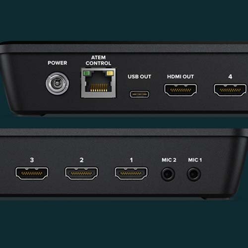 ATEM Mini Pro دارای 4 ورودی تصویر است که ویدیوهای HD 1080p را پشتیبانی می کند. همچنین یک خروجی HDMI برای پروژکتور یا مانیتورینگ Multiview، یک خروجی USB Type-C برای ضبط ویدیوی HD روی رایانه و یک پورت اترنت RJ45  برای لایو استریم و همچنین مدیریت سیستم، کنترل از راه دور و بروزرسانی میان افزار وجود دارد. شما می توانید نرخ فریم را بسته به کیفیت پخش خود تنظیم کنید. با ATEM Mini Pro نیازی به نرم افزار استریمینگ اضافی ندارید زیرا این دستگاه دارای یک انکدر سخت افزاری داخلی است.